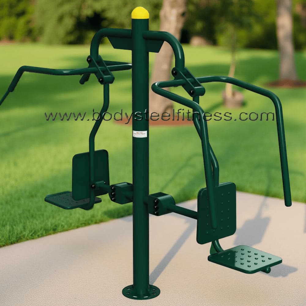 Experience premium outdoor fitness with our Body Steel Chest Press And Puller, featuring advanced dual-exercise functionality and weather-resistant construction for year-round performance.
