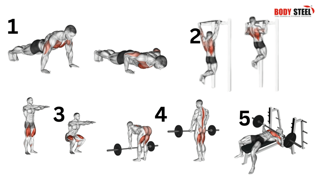 1. पुश-अप्स (Push-ups) – चेस्ट और ट्राइसेप्स के लिए